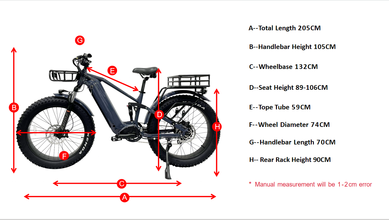 O Beast Plus também é uma bicicleta electirc em suspensão completa, equipada com uma poderosa bateria escondida de 62V 20Ah. Esta bicicleta elétrica de bateria escondida combina a durabilidade acidentada de um design de pneus gordo com a tecnologia inovadora de assistência elétrica, tornando -a perfeita para enfrentar uma variedade de terrenos, de praias de areia a trilhas nevadas. Você pode chamá -lo de bicicleta de caça elétrica.