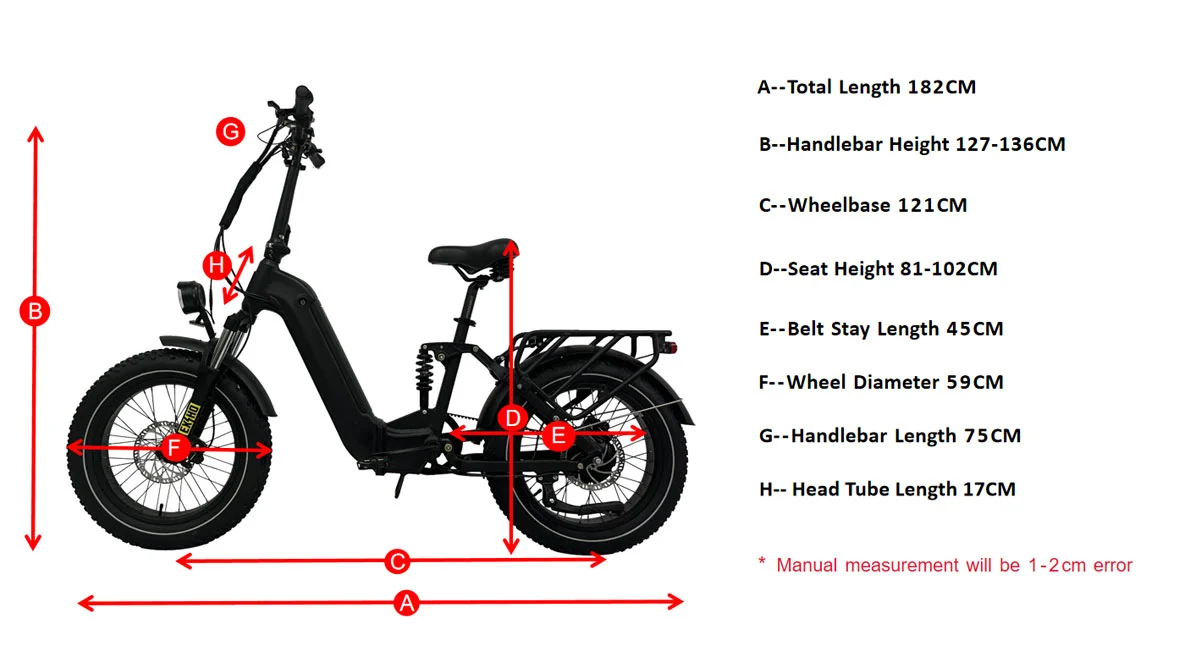 Esta bicicleta de gordura dobrável possui uma unidade de correia portões sem manutenção, que geralmente é encontrada apenas em bicicletas de ponta. O motor de 500 watts pode ajudá -lo até 21 mph. A bateria de dobrar a bicicleta elétrica do pneu gordo é integrada à estrutura, abaixando o centro de gravidade para melhorar a estabilidade, fornecendo uma aparência elegante. Adicionamos uma suspensão completa, que fornece um passeio mais confortável.